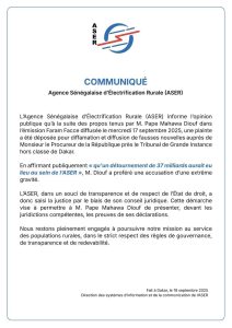 L’ASER souligne aussi son engagement constant à mener sa mission en faveur des populations rurales, tout en respectant rigoureusement les principes de gouvernance, de transparence et de responsabilité.